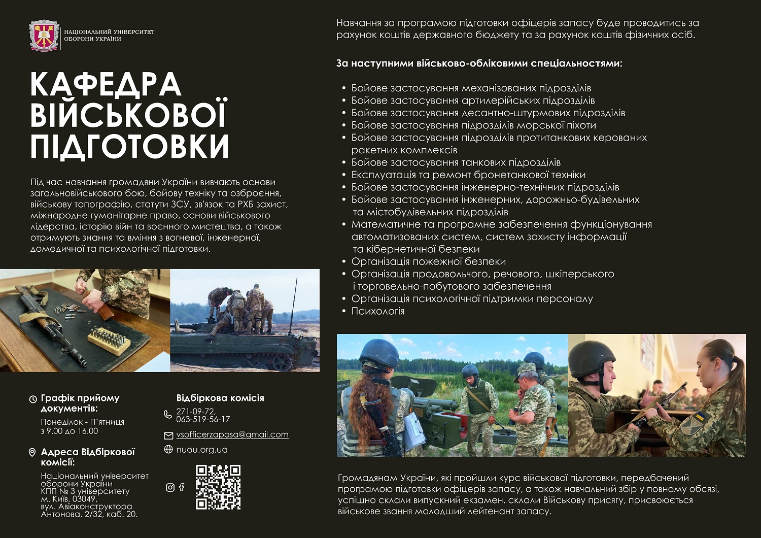 Більш детальну інформацію ви можете отримати у нас в навчально-науковому комлексі військової підготовки:
