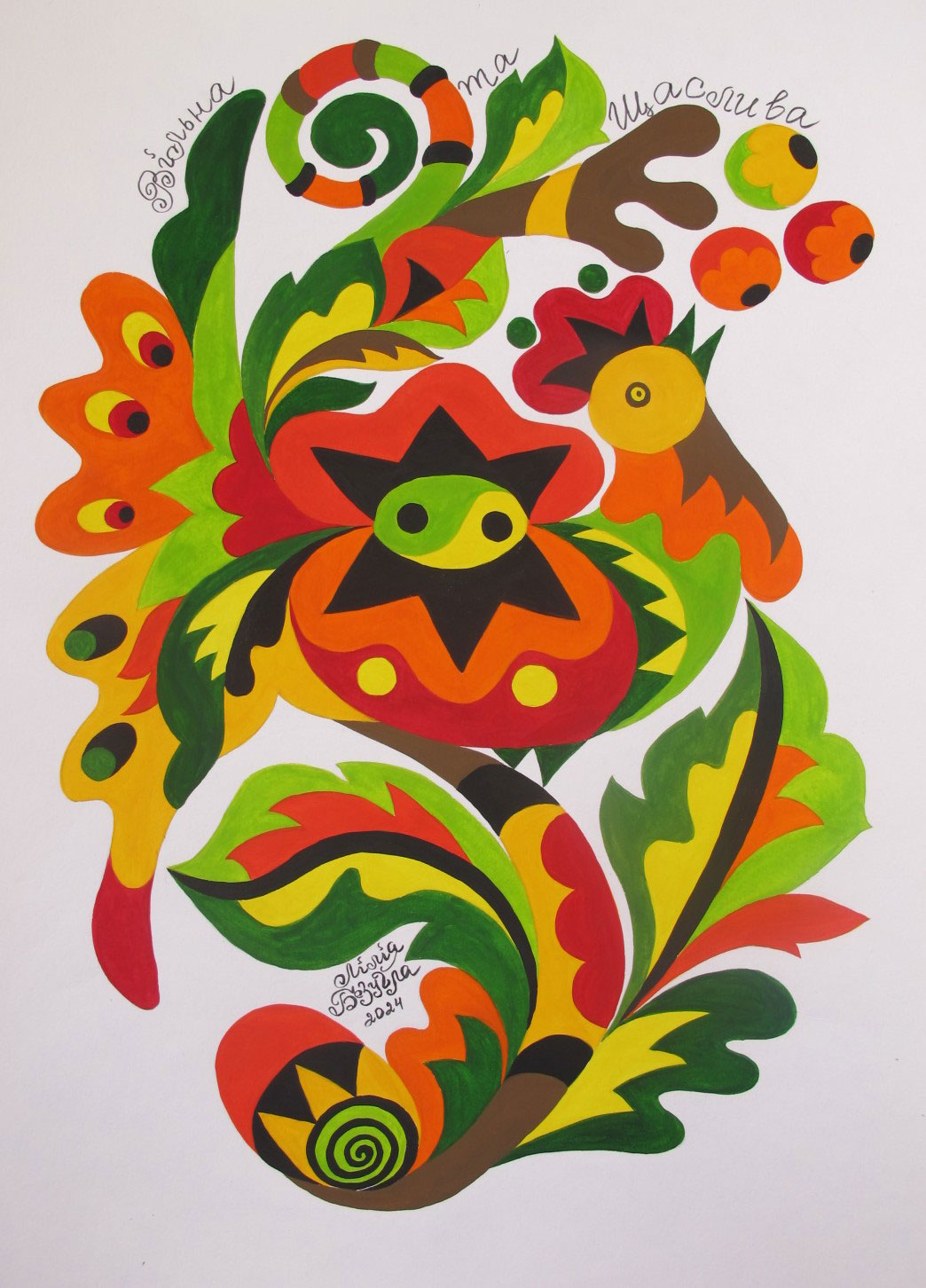 Лілія Безугла, «Відбудуємо! Розквітай!», 42х59,4, папір, гуаш, 2024