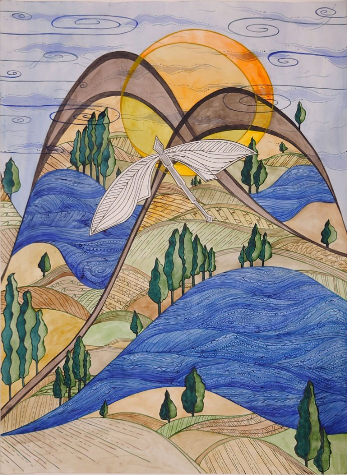 Лілія Журавель-Змєєва, «Повз літо», А2, папір, акварель, туш, 2023-2025