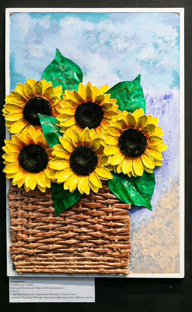 «Соняшник», Техніка – пап’є-маше, Керівник – Москальов Максим Володимирович, БПс-25 Кравченко Кристина, Орищенко Вікторія, Покуль Єва, Сергієнко Карина, Чібісова Анастасія, Яременко Ніка, Рябічев Артем