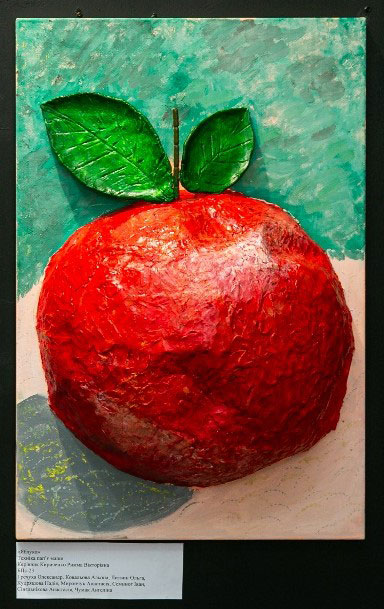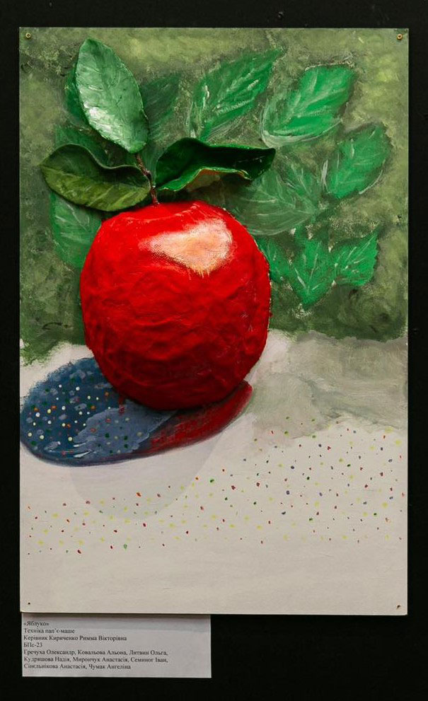 «Яблуко», Техніка – пап’є-маше, Керівник – Кириченко Римма Вікторівна, БПс-23 Гречуха Олександр, Ковальова Альона, Литвин Ольга, Кудряшова Надія, Мирончук Анастасія, Семиног Іван, Сінєльнікова Анастасія, Чумак Ангеліна