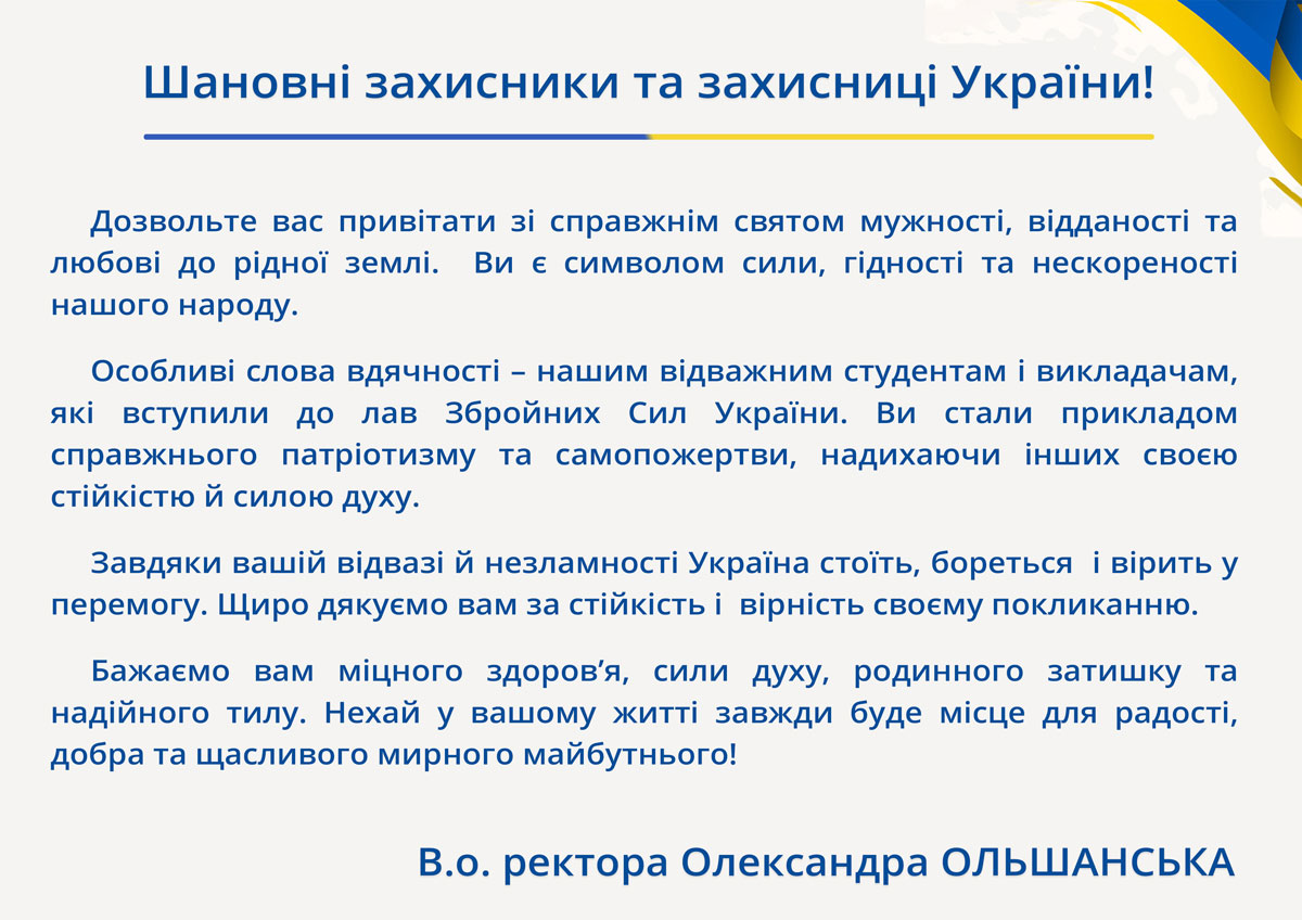 З ДНЕМ ЗАХИСНИКІВ І ЗАХИСНИЦЬ УКРАЇНИ!