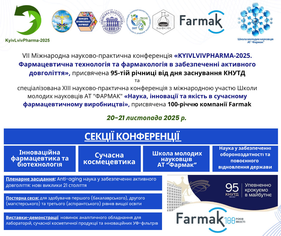 Цьогоріч конференція «KyivLvivPharma-2025» має особливе символічне значення, адже вона присвячена 95-тій річниці від дня заснування КНУТД.