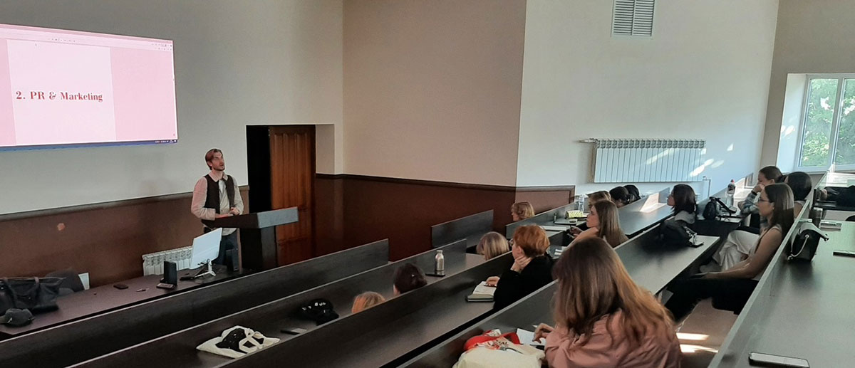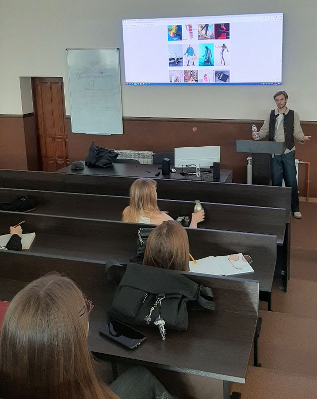 Під час лекції з теми «Створення fashion-бренду» В’ячеслав Москаль, який працював у fashion business development агенстві “LBK Agency” та в production-студії “LBK Production”, розповів студентам про досвід роботи з українськими fashion-брендами, етапи формування та просування бренду модного одягу, види креативного та технічного контенту в просуванні бренду та помилки, що допускають бренди в процесі становлення та функціонування.
