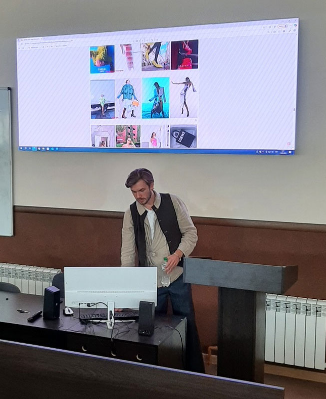 Під час лекції з теми «Створення fashion-бренду» В’ячеслав Москаль, який працював у fashion business development агенстві “LBK Agency” та в production-студії “LBK Production”, розповів студентам про досвід роботи з українськими fashion-брендами, етапи формування та просування бренду модного одягу, види креативного та технічного контенту в просуванні бренду та помилки, що допускають бренди в процесі становлення та функціонування.
