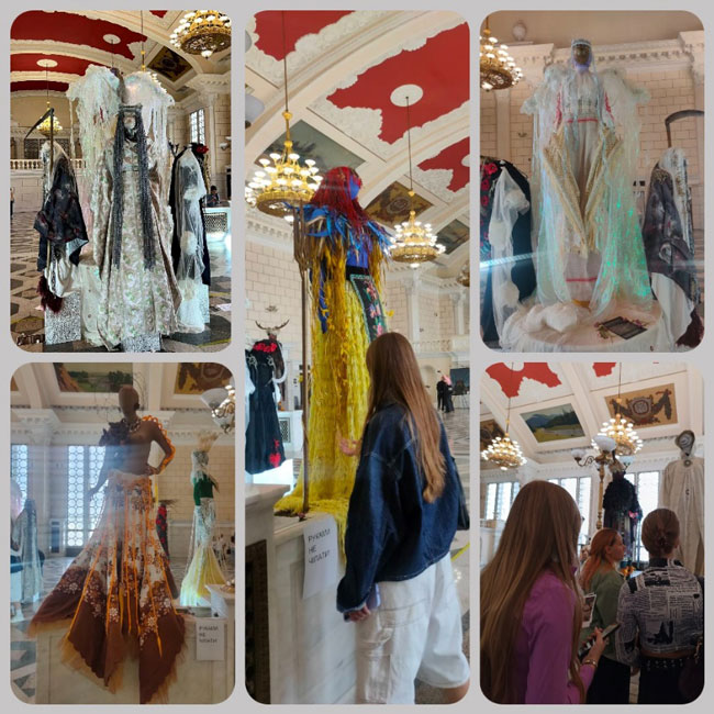 Студенти з інтересом розглядали вироби ручної роботи виготовлені на основі апсайклінгу, з використанням старовинних і сучасних матеріалів, а також військових елементів, що символізують пам’ять про воїнів-захисників. Здобувачі були вражені деталізацією та символічністю образів, в яких кожен костюм передавав характер і дух певного історичного періоду чи постаті, занурюючи у минуле. Корисною була інформація надана до кожного артоб’єкта, зокрема опис персонажа пов’язаний із сучасною постаттю – військовим або військовою, митцем чи культурним діячем. Персонажі виставки увібрали силу цих людей, проте без облич – щоб підкреслити, що цінності не залежать від конкретної постаті, а спільні для всієї нашої культури.