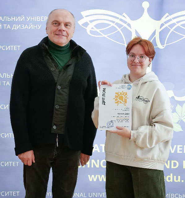 Студентка Софія Стороженко (гр. Бдг1-23) за плакати «Бережи себе та електроенергію», «Розплутай цей безлад», «Романтизуй енергозбереження» отримала гран-прі конкурсу і цінний приз від партнерів конференції «Енергоефективний університет».