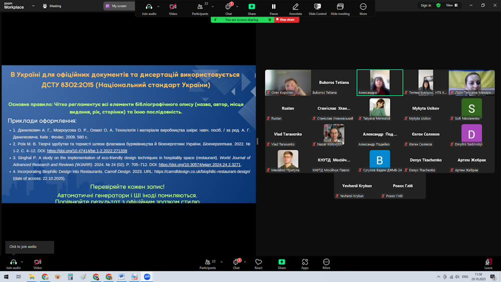 29 жовтня 2025 року в Київському національному університеті технологій та дизайну Центр менеджменту якості освітньої діяльності (керівник – к.мист. Лідія МАКАРЕНКО) спільно з Міжнародним інститутом аспірантури і докторантури (керівник – к.т.н., доцент Світлана АРАБУЛІ) провели лекцію для аспірантів на тему «Правові та етичні засади академічної доброчесності».
