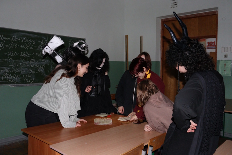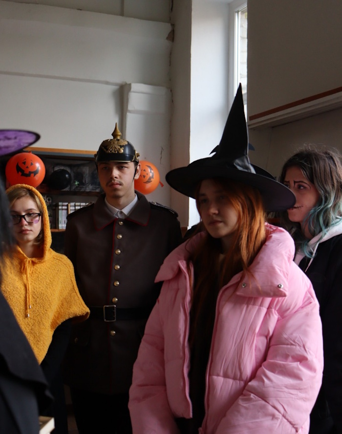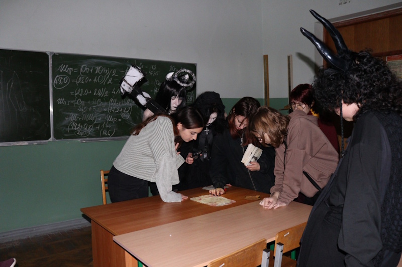 Виконуючи креативні завдання квесту команди студентів вирушили на пошуки загадкової сукні. Учасники розгадували підказки, занурюючись у справжню атмосферу містики й пригод. Після проходження квесту здобувачі освіти долучилися до конкурсу хелловінських образів, де змогли продемонструвати свій стиль, фантазію та почуття гумору.