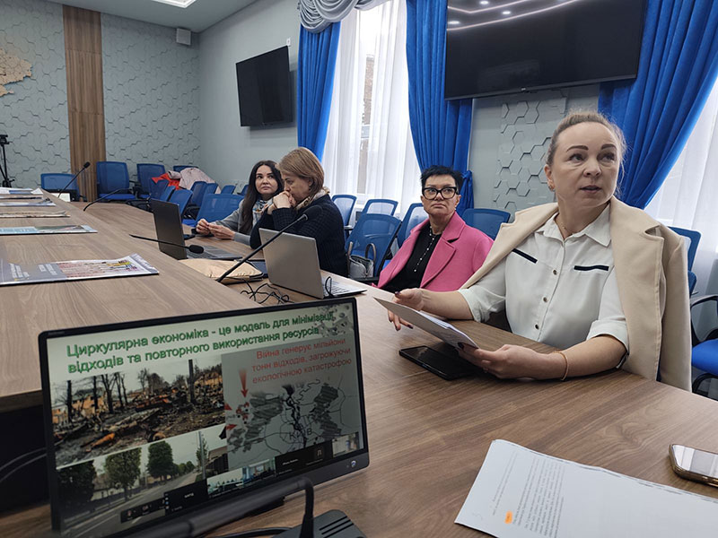 Людмила МЕЛЬНИК, доктор філософії з економіки, доцент кафедри економіки представила доповідь на тему «Циркулярна економіка для управління відходами у воєнний час» на прикладі Бучанського району.