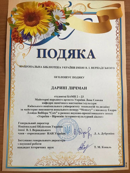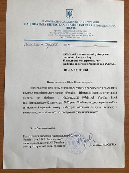 5 листопада 2025 року у Національній бібліотеці України імені В. І. Вернадського відбувся масштабний культурно-науковий захід, присвячений 1000-літтю вшанування пам’яті Візантійського імператора Василія II Порфірогенета. Програма організована у співпраці з Національним заповідником «Софія Київська», Музеєм Параджанова Київського міжнародного університету, а також Київським національним університетом технологій та дизайну, що стане важливою платформою для дослідження тисячолітніх українсько-вірменських історичних і культурних зв’язків. До вітального слова, зокрема відкритті виставки долучилися з концертним номером науково-педагогічні працівники та здобувачі освіти спеціальності В6 «Перформативні мистецтва» кафедри сценічного мистецтва і культури Факультету культури і культурних індустрій.