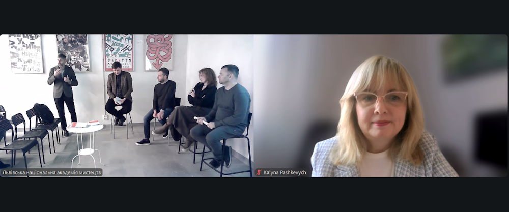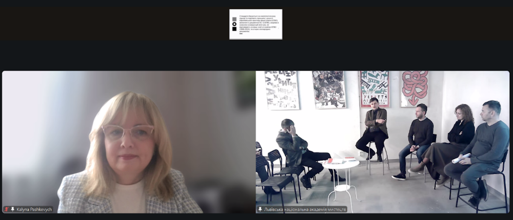 Калина Пашкевич як голова підкомісії зі спеціальності B2 «Дизайн» НМК МОНУ під час дискусії розповіла про стан розробки нового стандарту спеціальності «Дизайн», про роботу членів підкомісії, про наступні етапи розробки стандарту.