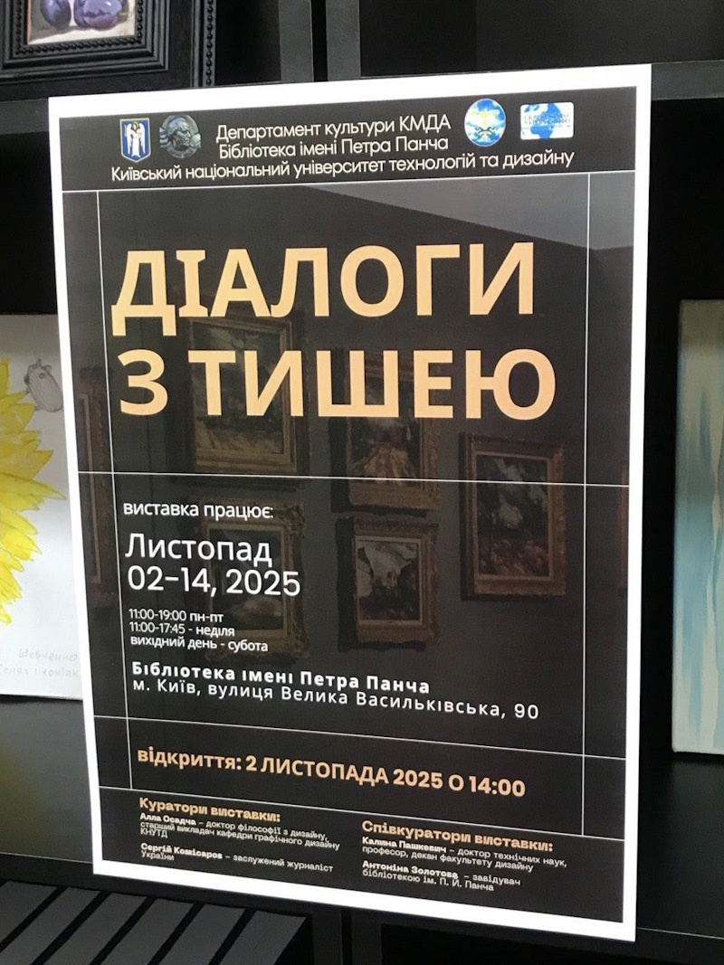 До 95-річчя КНУТД з 2 по 15 листопада 2025 року в бібліотеці імені Петра Панча Голосіївського району м. Києва експонувалась колективна художня виставка «Діалоги з тишею» картин студентів та викладачів кафедри графічного дизайну КНУТД.