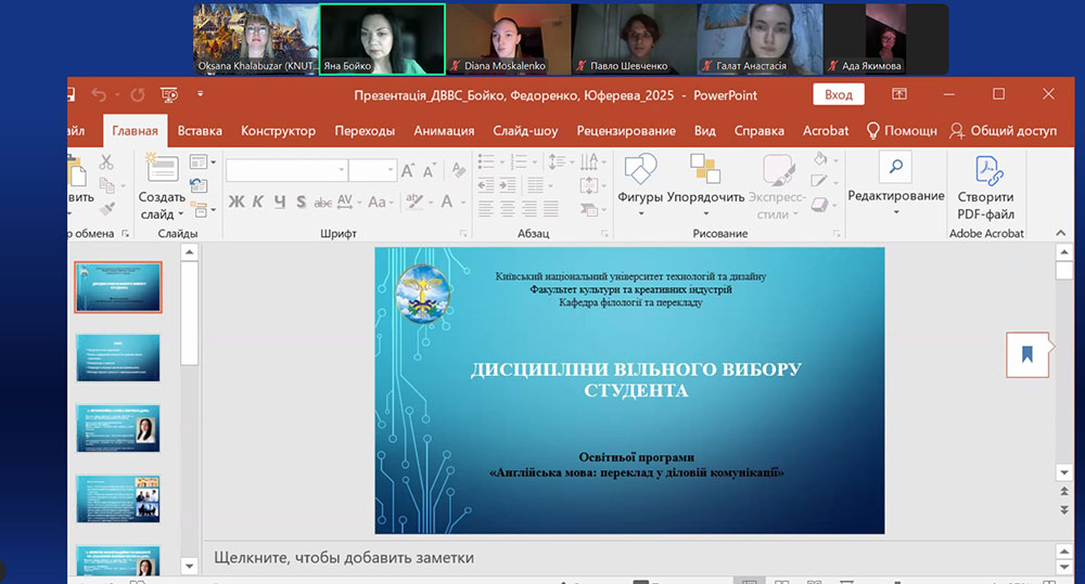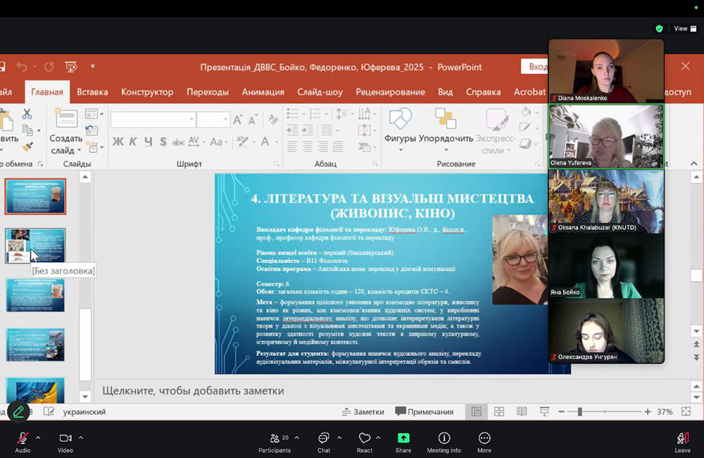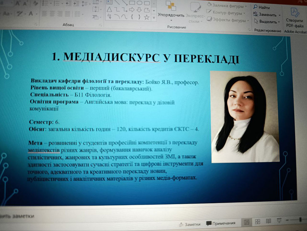 У ході обговорення було окреслено перспективні напрями подальшого вдосконалення освітніх компонентів, зокрема в частині більш гнучкого поєднання теоретичного змісту з практично орієнтованими формами роботи, розширення використання прикладних кейсів, проєктних завдань та сучасних цифрових інструментів, що відповідають актуальним запитам професійної діяльності перекладача.
