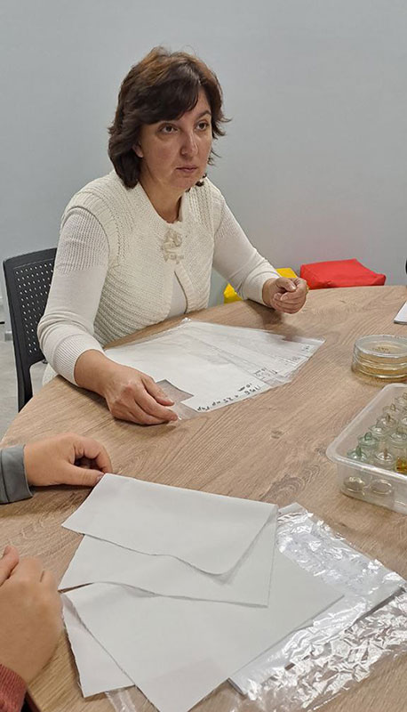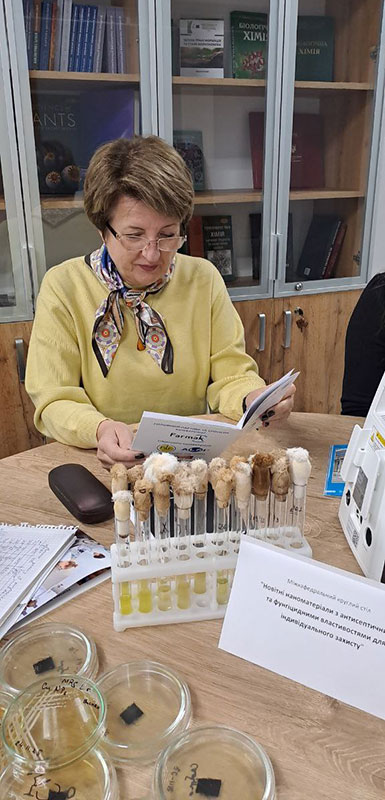 Основний акцент був зроблений на новітніх методах одержання та використання наноматеріалів. Ольга Гараніна звернула увагу присутніх на вимоги до текстильних матеріалів спеціального призначення. Ірина Ляшок розповіла про сучасні методи синтезу наночастинок з унікальними антимікробними характеристиками; про можливості отримання волокнистих наноматеріалів методом електроформування. Ірина Волошина доповіла про методи оцінки ефективності наноматеріалів проти різних видів бактерій та грибків.
