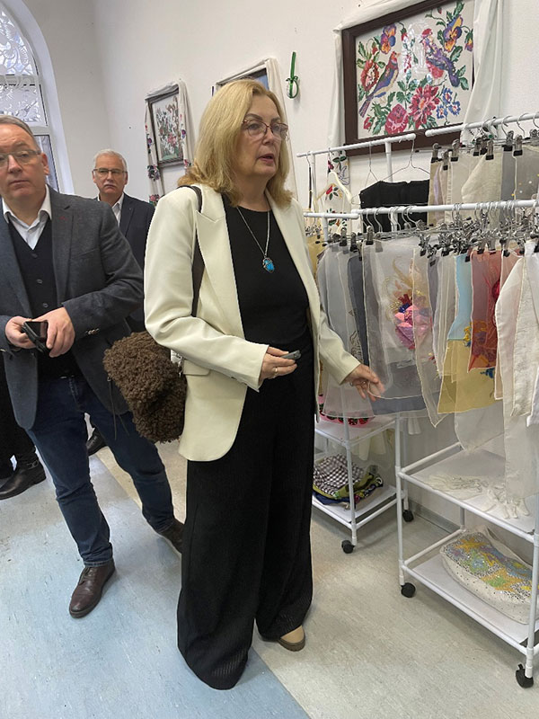 Олександра Ольшанська зазначила, що освітні програми в університеті за спеціальністю «Технології легкої промисловості» є актуальними та конкурентоспроможними на ринку освітніх послуг, а випускники за ними затребувані роботодавцями. Вона звернула увагу, що в ході профорієнтаційної діяльності проводиться інформаційно-роз’яснювальна робота з метою формування реального позитивного уявлення про майбутню спеціальність і підвищення мотивації до вступу. В.о. ректора відзначила, що також завдяки роботі нещодавно створеного маркетингового відділу відбувається популяризація спеціальностей шляхом активної присутності у соціальних мережах та інших сучасних каналах комунікації. Саме в партнерстві освіти і бізнесу одним із дієвих механізмів подолання кадрового дефіциту є програма дуальної освіти. Також Олександра Володимирівна наголосила на важливості подібних зустрічей, адже саме живий діалог із представниками промисловості дозволяє гнучко реагувати на потреби ринку праці. Завершуючи виступ, вона засвідчила, що ефективна взаємодія бізнесу, закладів освіти і державних інституцій дозволяє створювати сучасні освітні продукти, забезпечувати студентам доступ до технологій, а підприємствам – отримувати підготовлених фахівців, орієнтованих на практику й інновації.