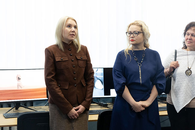 Під час відкриття 3D-Хабу з вітальним словом виступили в.о. ректора КНУТД Олександра Ольшанська, проректор з наукової та міжнародної діяльності Людмили Ганущак-Єфіменко, а також Голда Виноградська – голова правління Fashion Globus Ukraine. До заходу долучилися представники європейських партнерських закладів: координатор проєкту Евридікі Папахрістоу з Міжнародного грецького університету (Греція), Маріана Костеа – представник Технічного університету Яссі ім. Георгія Асачі (Румунія) та Олена Кизимчук, представник Технічного університету Дрездена (Німеччина).