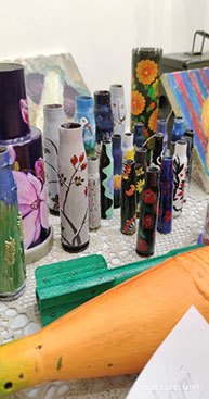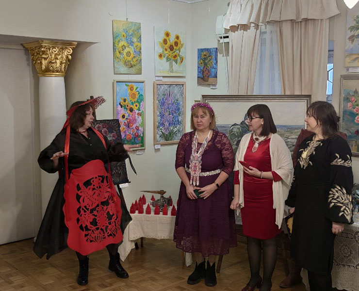В експозиції представлені авторські художні полотна викладачів факультету, унікальні вироби ручної роботи, розписані гільзи та військові артефакти, перетворені на об’єкти мистецтва.