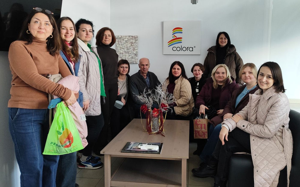 Також учасники проєкту відвідали текстильне підприємство «COLORA», яке займається опорядженням текстильних матеріалів. Представник компанії ознайомив відвідувачів з етапами фарбування та сушки матеріалів, нанесення принтів, роботою лабораторії по дослідженню властивостей тканин та трикотажних полотен, дизайнерським відділом підприємства.