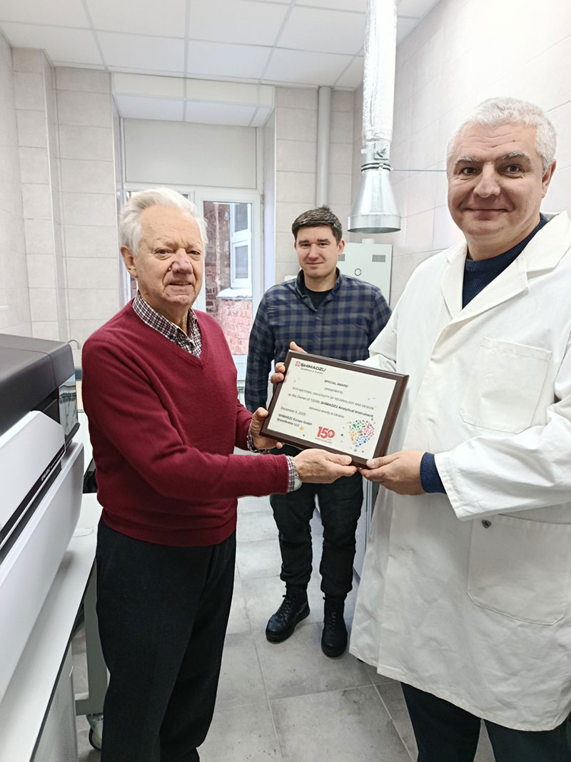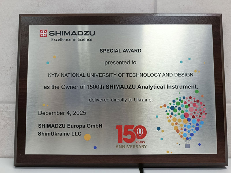 Новий рік для кафедри хімічних технологій та ресурсозбереження розпочався з приємної події. Керівник навчально-наукової лабораторії «Новітні матеріали і процеси в електрохімічній енергетиці» проф. Володимир ХОМЕНКО отримав Сертифікат про встановлення в КНУТД 1500 екземпляру мас-спектрометра SHIMADZU (Японія) з індуктивно зв’язаною плазмою від компанії «ShimUkraine». Знакова зустріч з представниками компанії «ShimUkraine», яка є офіційним дистриб’ютором обладнання від SHIMADZU (Японія), відбулась 5 січня 2026 року. На цій зустрічі за участі завідувачки кафедрою ХТР Вікторії ПЛАВАН обговорювались плани подальшої співпраці, адже компанія «ShimUkraine» пропонує сучасне аналітичне, вимірювальне, вагове обладнання для різних застосувань.