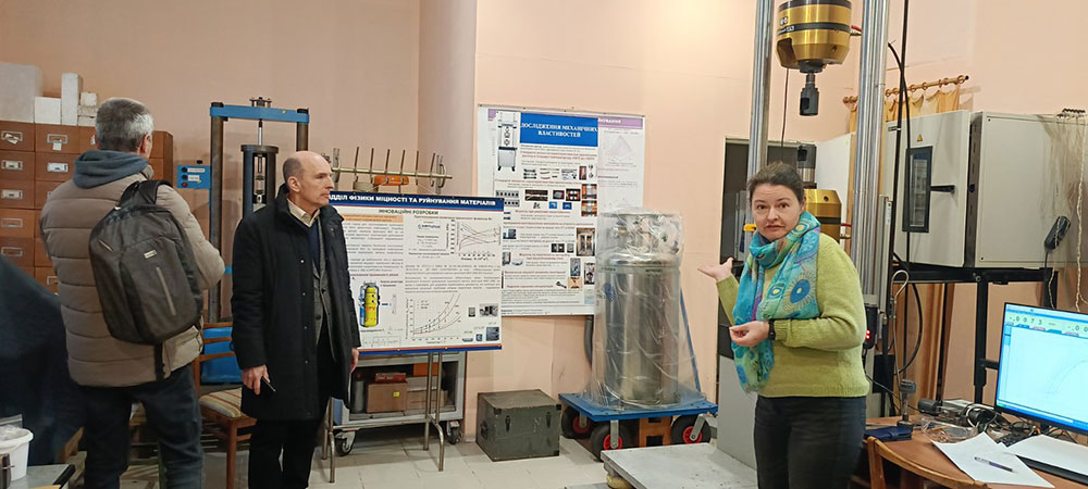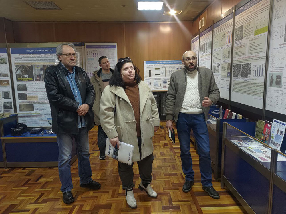 Директор інституту, академік НАН України д.ф.-м.н. Валентин Андрійович Татаренко та його заступники к.ф.-м.н. Віталій Петрович Бевз та д.ф.-м.н., професор Вячеслав Вячеславович Лізунов провели екскурсію по більшості наукових лабораторій Інституту з демонстрацією їх роботи. Під час ознайомлення з різними лабораторіями завідувачка кафедри прикладної фізики та вищої математики Ірина Веніамінівна Олейнікова мала можливість домовитися про проходження практики студентами спеціальності E6 (105) Прикладна фізика та наноматеріали для проведення дослідницької діяльності за тематиками наукового напрямку кафедри.