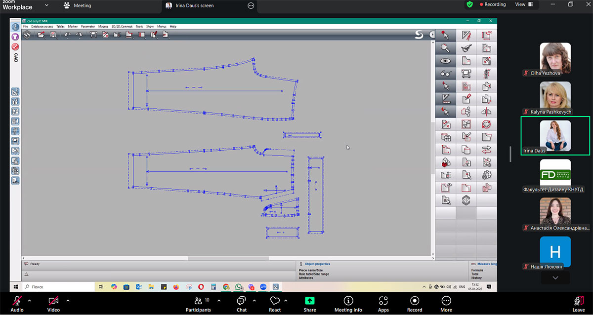 Протягом навчання викладачі, виконавці проєкту InnovaTex, вивчили інструменти для конструювання та моделювання деталей одягу, ознайомились з правилами градації лекал в програмі Assyst та формуванням розкладок лекал, з модулями програми та базами даних.