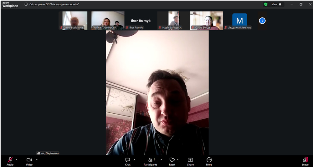 В обговоренні прийняв участь професор Інституту Європейського Університету економіки в Бидгощі Ігор ОХРІМЕНКО, який приділив увагу формуванню професійних компетентностей у сфері міжнародної економіки, трансформації міжнародного бізнес-середовища, цифровізації економічних процесів та новим вимогам до компетентностей майбутніх випускників.