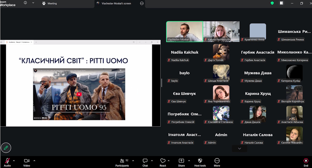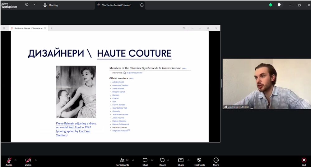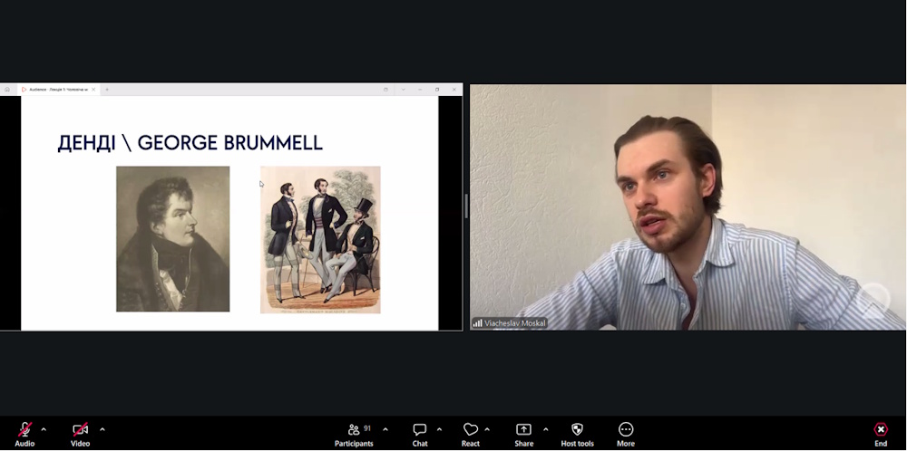 В’ячеслав Москаль навчається в аспірантурі на факультеті дизайну КНУТД за спеціальністю 022 Дизайн (науковий керівник – Людмила Мельник, кандидат технічних наук, доцент), тому він провів лекцію в межах власної науково-педагогічної практики та викладання вибіркової дисципліни «Актуальні тенденції моди».