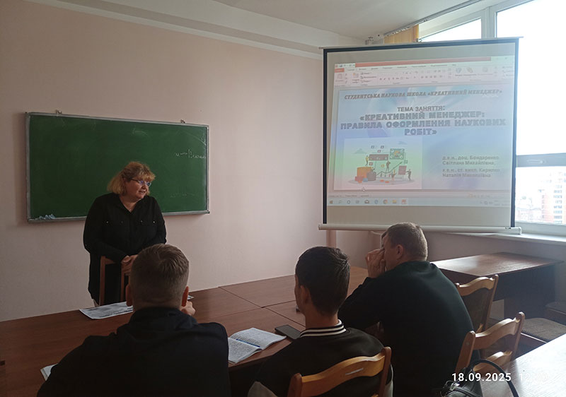 18 вересня 2025 року в межах діяльності студентського наукового гуртка «Креативний менеджер» відбулося заняття на тему: «Підготовка до виконання наукових робіт».
