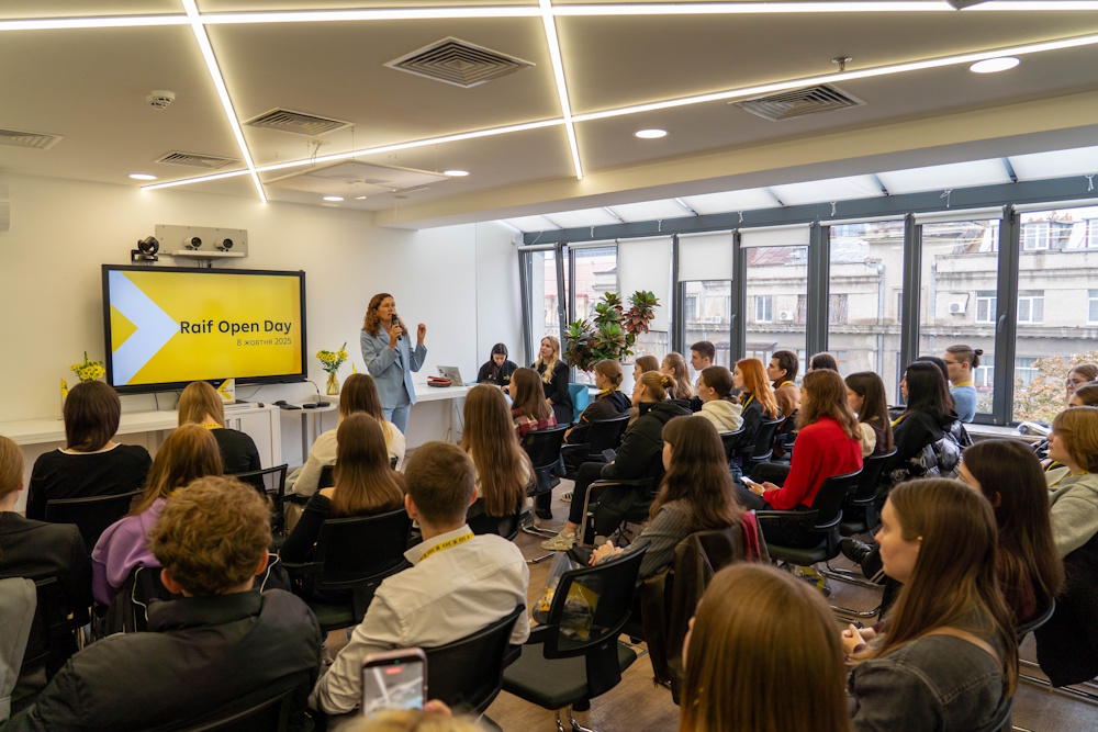 Продовження засідання наукового студентського гуртка «Професійна студія з фінансів» відбулося у форматі участі студентів у Raif Open Day — події, коли Raiffeisen Bank відчиняє двері для молоді, яка робить свої перші кроки у професійній кар’єрі.