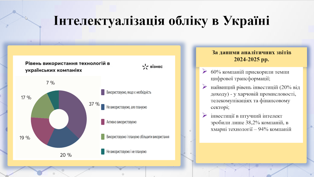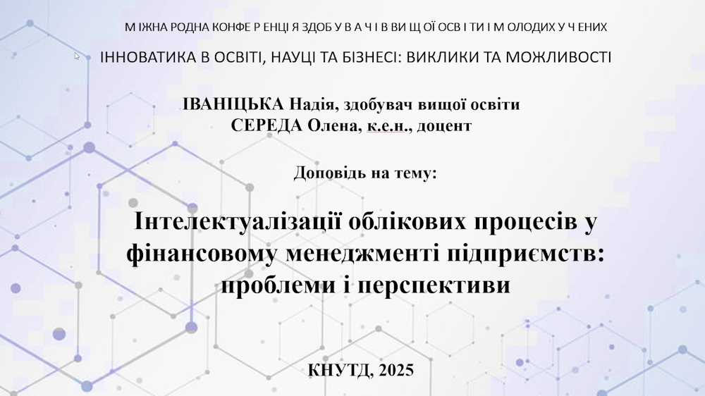 Під час заходу Надія Іваницька презентувала доповідь на тему «Інтелектуалізація облікових процесів у фінансовому менеджменті підприємств: проблеми і перспективи».