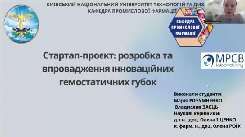 Студенти кафедри промислової фармації КНУТД Марія Розумненко та Владислав Заєць під керівництвом д.т.н. Олени Іщенко та к.фарм.н. Олени Роїк розробили стартап-проєкт, присвячений розробці та впровадженню інноваційних гемостатичних губок. Ця наукова робота спрямована на створення ефективних засобів для швидкої зупинки кровотеч, що є критично важливим для надання екстреної медичної допомоги в сучасних умовах.