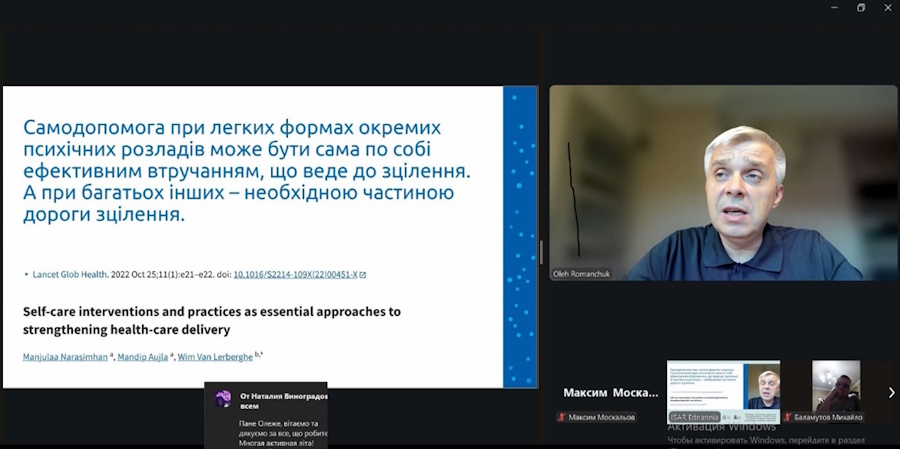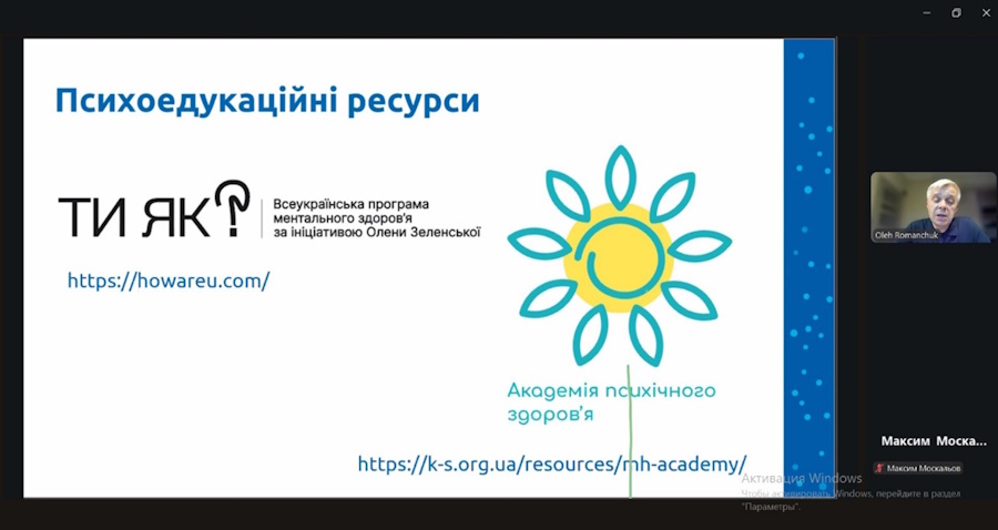 - технології забезпечення психічного здоров’я на макрорівні (рівні освітньої галузі) (всеукраїнські онлайн-вебінари та науково-практичні конференції);