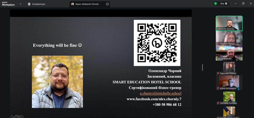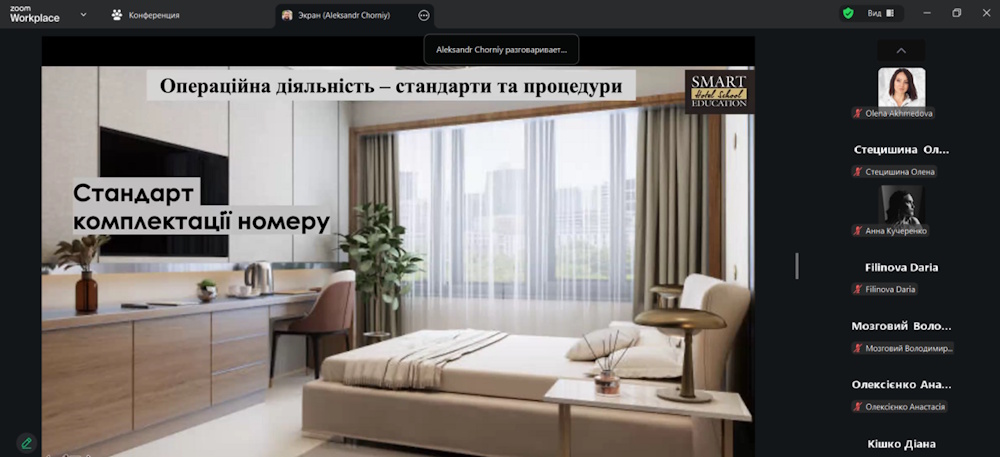 Зустріч відбулася 09.02 у форматі онлайн-конференції. Обмінювалися думками про те, як сьогодні трансформуються сервісні стандарти в готельному бізнесі: про нові очікування гостей, цифрові інструменти в галузі, необхідність персоналізації сервісу, Розібрали реальні кейси з індустрії. Було багато практики, живих прикладів та професійного інсайту.