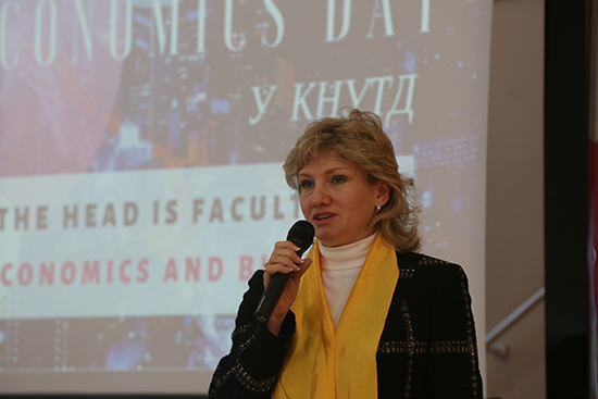 Зі вступним словом та привітанням гостей свята уКиївському національному університеті технологій та дизайну виступила декан факультету економіки та бізнесу, професор Олександра Володимирівна Ольшанська. Вона ознайомила присутніх зі славетною історією Університету та значними досягненнями його професорсько-викладацького колективу. Від студентів факультету з вітальним словом виступив голова студентського самоврядування Артем Притуленко.