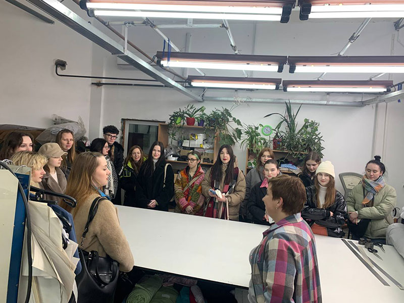 Начальник відділу продажів ТФ «РОЗА» Людмила Москаленко гостинно зустріла та провела екскурсію для здобувачів освіти бакалаврського рівня освітньої програми «Дизайн одягу» (гр. БДо1,2-22, БДо1-3-21, БДо1,2-20), магістерського рівня ОП «Дизайн (за видами)» (гр.МгД2-22), а також науково-педагогічних працівників: Оксани Пасько, декана Факультету дизайну, Калини Пашкевич, завідувача кафедри мистецтва та дизайну костюма, керівників практики, викладачів кафедри мистецтва та дизайну костюма: Тетяни Кротової, Олени Герасименко, Петра Гаркіна.