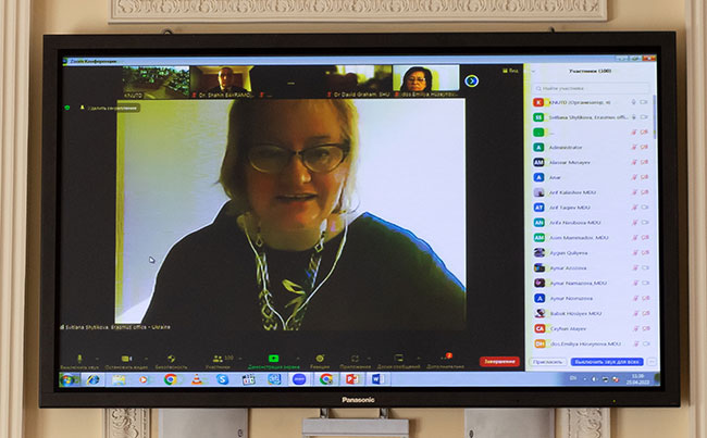 Олександра Ольшанська доповіла, що грантову заявку розроблено командою науковців факультету управління та бізнес-дизайну КНУТД і подано до розгляду 14 лютого 2022 року. Назва проєкту ERASMUS-EDU-2021-VIRT-EXCH «МІЖНАРОДНА МЕРЕЖА ВІРТУАЛЬНИХ МОЛОДІЖНИХ БІЗНЕС ХАБІВ», VEHUB4YOU. Через півроку було отримано погодження від комісії Євросоюзу на реалізацію ідеї віртуальних обмінів в Україні та Азербайджані. Термін реалізації проєкту — 3 роки: 2023–2025 рр. Загальна сума фінансування грантового проєкту – 349 841 євро.