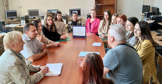 Студенти з інтересом задавали питання Григорію Івановичу. Так, Яна Кажукало, яка входить до складу робочої групи освітньої програми «Конструювання та технології швейних виробів», поцікавилась щодо затребуваності та перспектив працевлаштування випускників даної освітньої програми. Поважний роботодавець підкреслив, що на сьогодні в індустрії моди існує великий дефіцит фахівців вищої ланки. Тому реальний сектор економіки – виробники одягу, білизни, спорядження, потребує технологів, конструкторів, експертів, які володіють спеціальними знаннями як з конструювання швейних виробів, так і з технологій їх виготовлення, основ проєктування технологічних процесів виготовлення одягу, методів оцінки їх якості тощо.