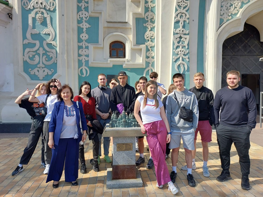 Студенти уважно послухали розповідь екскурсовода про історію собору, оглянули макети споруди різних періодів. Софія Київська належить до класичного типу хрестово-баневих храмів, конструкція яких остаточно склалася в ІХ-ХІІ ст. Внаслідок перебудов у XVII-XVIII ст., здійснених за часів гетьмана Івана Мазепи, собор зовні набув барокового вигляду, який у своїх основних рисах зберігся донині.