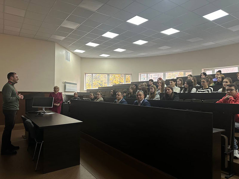 Володимир Костін почав із загального огляду роботи банківського відділення, акцентувавши на процесах обслуговування клієнтів та надання фінансових послуг. Зокрема, частина лекції була присвячена роботі з кредитами — однієї з найбільш затребуваних банківських послуг. Лектор розповів, як формується рішення про видачу кредиту, як банк аналізує ризики, оцінює платоспроможність клієнта та обирає оптимальні умови для кожного запиту. Для студентів це стало нагодою зрозуміти, як складні фінансові моделі й теоретичні аспекти ризик-менеджменту застосовуються в реальних ситуаціях.