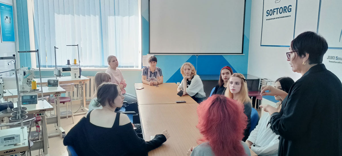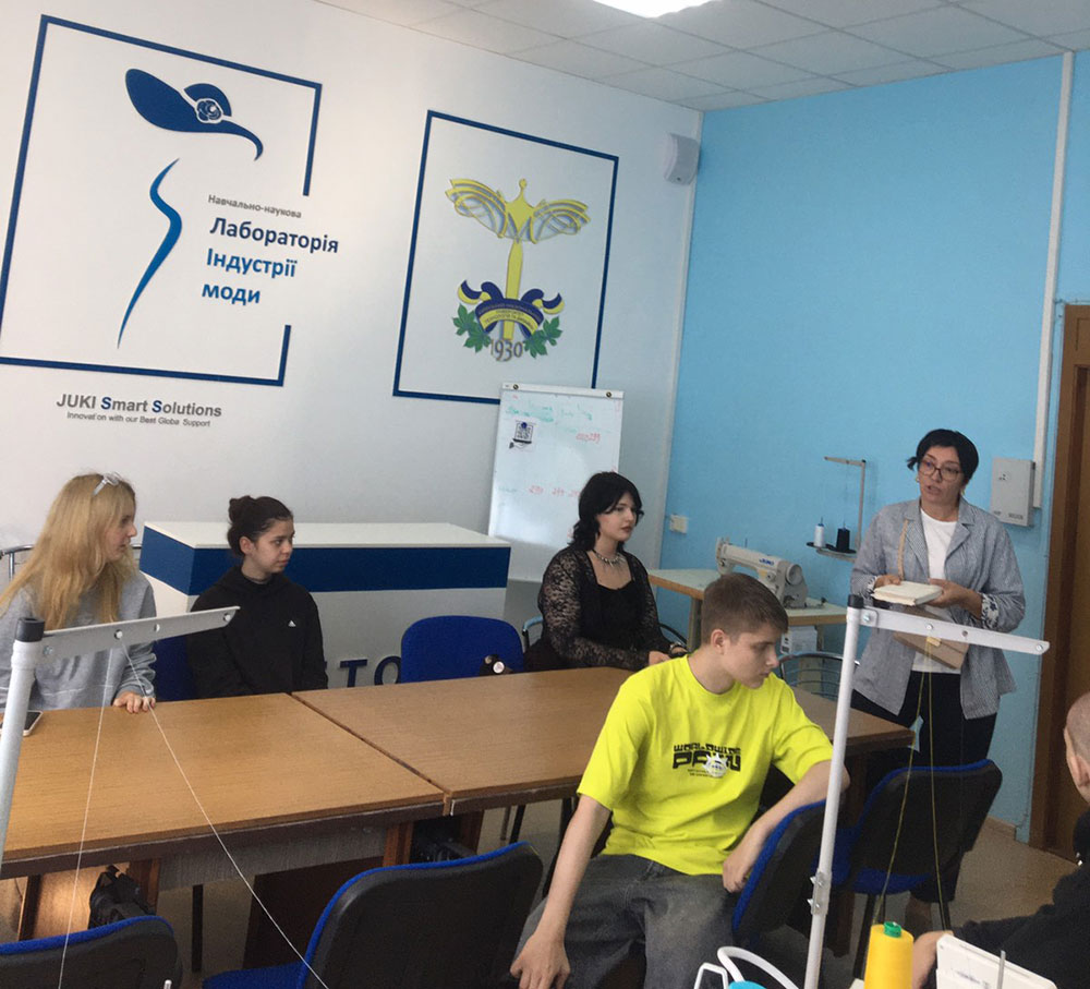 Далі студенти побували в навчально-науковій лабораторії швейних технологій в індустрії моди “Softorg” (ауд.1-0114). Декан зазначила, що навчально-наукова лабораторія оснащена найсучаснішими промисловим обладнанням японського бренду “Juki” завдяки стейкхолдеру та багаторічному партнеру університету – компанії “Softorg”, та призначена для проведення практичних занять, лабораторних робіт у рамках освітнього процесу. Новітні технології та застосування набутих знань на практиці сприяють проведенню дослідницької роботи, курсових, кваліфікаційних робіт (проєктів).