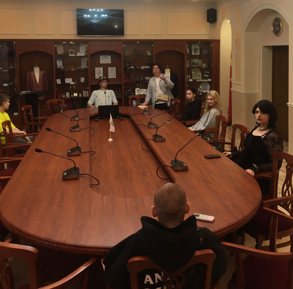 На завершення екскурсії студенти ознайомилися із залою-музеєм імені Михайла Вороніна (ауд.1-0130). Здобувачі почули життєву історію про людину-легенду, видатного українського модельєра і виробника класичного одягу, метра чоловічого костюма Михайла Вороніна – випускника університету 1972 року. Декан факультету нагадала присутнім про виготовлений Михайлом Вороніним смокінг 500-го розміру, який було внесено до Книги рекордів Гіннеса.