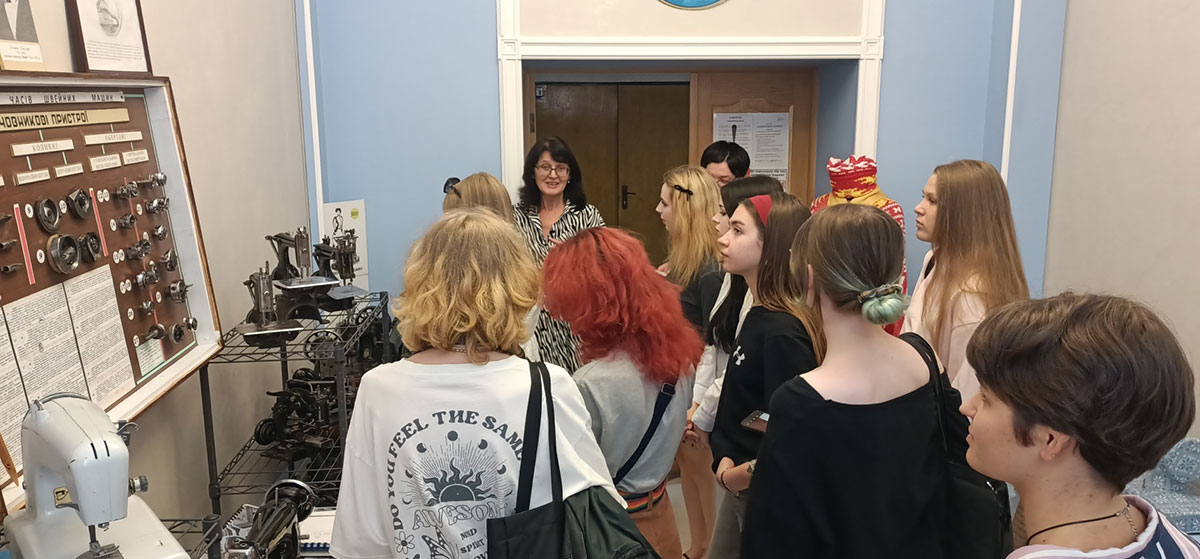 Наступною не менш цікавою локацією стала лабораторія історії розвитку швейних машин (ауд. 1-0113). Людмила Крехова та Наталія Остапенко продовжили екскурсію і занурили студентів у світ швейної технології та мистецтва. Вони розповіли, що у 2005 році в Київському національному університеті технологій та дизайну на честь 50-річчя кафедри машин легкої промисловості була створена лабораторія, в якій представлені швейні машини та деталі, виготовлені починаючи з ХІХ століття і до сьогоднішнього дня.