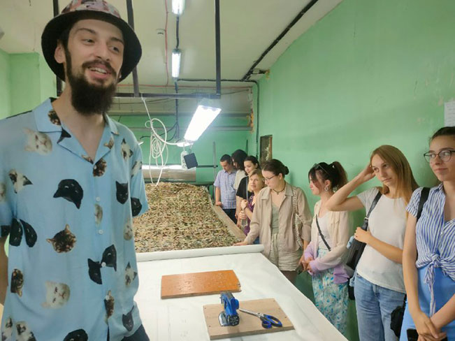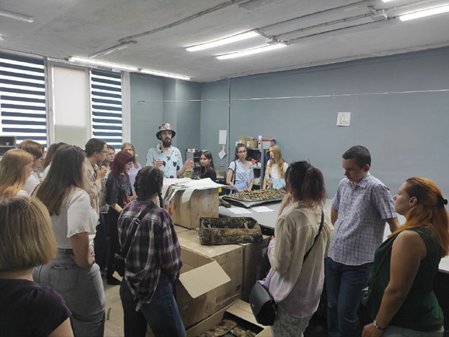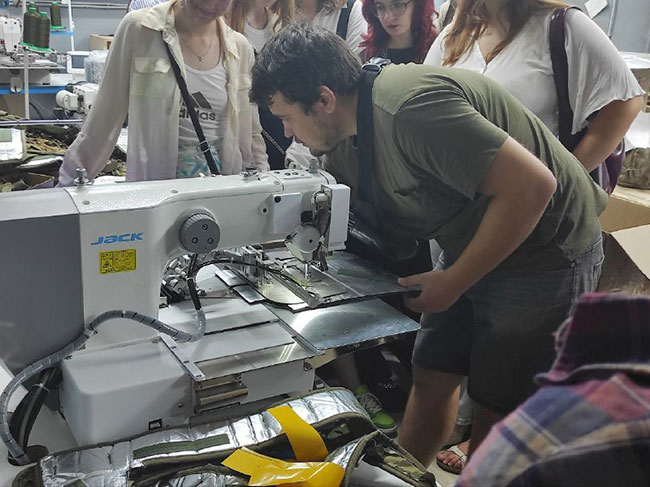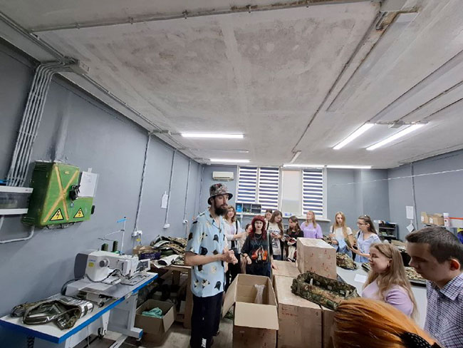 У перших числах вересня під керівництвом Галини Олійник, доцента кафедри моди та стилю в рамках дисципліни вільного вибору «Основи проєктування виробів спеціального/військового призначення», із залученням учасників наукового гуртка «Створення нових видів спеціального, виробничого, форменого одягу з прогнозованими характеристиками» для студентів ОП «Моделювання, конструювання та художнє оздоблення виробів легкої промисловості», «Конструювання та технології швейних виробів» організовано навчальну екскурсію на конструкторсько-виробниче підприємство “SASS Military” – українське підприємство, що спеціалізується на дослідженні, розробці й виробництві текстильних виробів технічного та промислового призначення, зокрема спеціалізованих захисних чохлів, сучасних маскувальних систем і антидронових рішень.