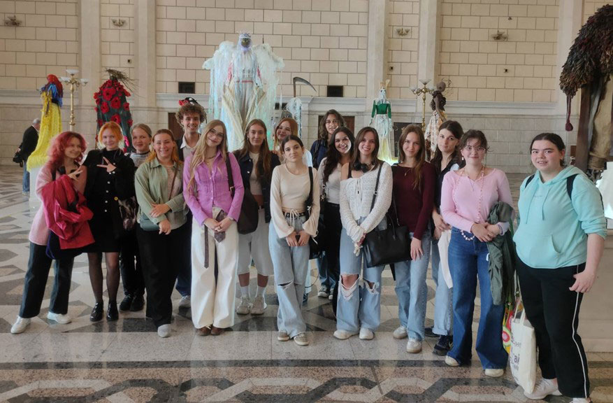 22 вересня 2025 року здобувачі першого (бакалаврського) рівня вищої освіти 1-го та 2-го курсів ОПП «Моделювання, конструювання та художнє оздоблення виробів легкої промисловості», «Конструювання та технології швейних виробів» разом з кураторами Галиною Олійник та Яною Мамченко, із залученням учасників студентського наукового гуртка «Мистецтво та мода: творчий погляд на проєктування» відвідали арт-об’єкт «Вічні.UA: Подорож з минулого в майбутнє». Проєкт поєднує історію, сучасність та міфологію, показуючи, як культурні архетипи знаходять нове втілення у сучасних українцях, підкреслюючи стійкість і єдність суспільства у час війни. В експозиції зібрано 14 образів слов’янських богів і міфологічних персонажів. Їх створила Ірина iSky, художниця та військовослужбовиця 59-ї окремої штурмової бригади імені Якова Ганзюка. Мисткиня інтерпретувала міфологічні фігури крізь власний творчий та життєвий досвід.