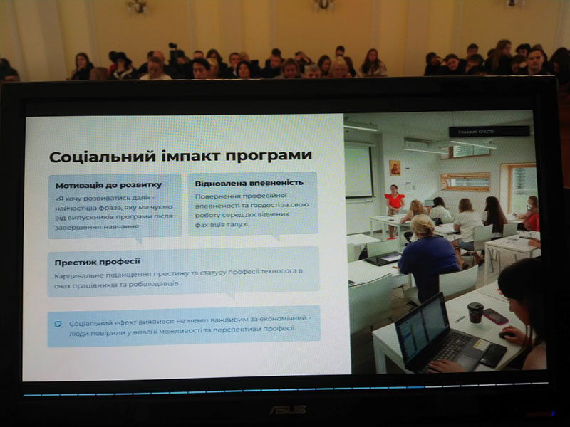 З доповіддю про реальну співпрацю науки, освіти і бізнесу в реалізації унікального освітнього проєкту «Школа швачок» виступив Іван Скороходов, директор з маркетингу компаній «Fialan» та «Prizzi Sewing Machines». Він зазначив, що спільний проєкт Університету із «ТК-Домашній Текстиль», що здійснюється за підтримки Організації Об’єднаних Націй з промислового розвитку (UNIDO) є важливою ініціативою, яка сприяє розвитку партнерства, надає можливість охочим здобути нові професійні навички та знання. Проєкт є особливо актуальним, адже розвиток легкої промисловості є одним із пріоритетів розвитку економіки України в умовах війни та післявоєнної розбудови. Він користується неймовірною популярністю, від його започаткування відбулося чотири випуски швачок і стартували нові набори.