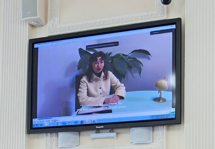 Привітала учасників конференції д-р Антоніна Дьякона, заступник ректора Ризького Північного університету (Латвійська Республіка), вона зосередила увагу на актуальних питаннях розвитку освіти та науки в умовах цифрової трансформації. Окрему увагу було приділено ролі міжнародного співробітництва у формуванні сучасного освітнього середовища та зміцненні взаємодії між університетами, бізнесом і державними структурами. Пані Антоніна наголосила, що лише завдяки поєднанню зусиль науковців, освітян та підприємців можливо створити дієву інноваційну екосистему для відбудови України.