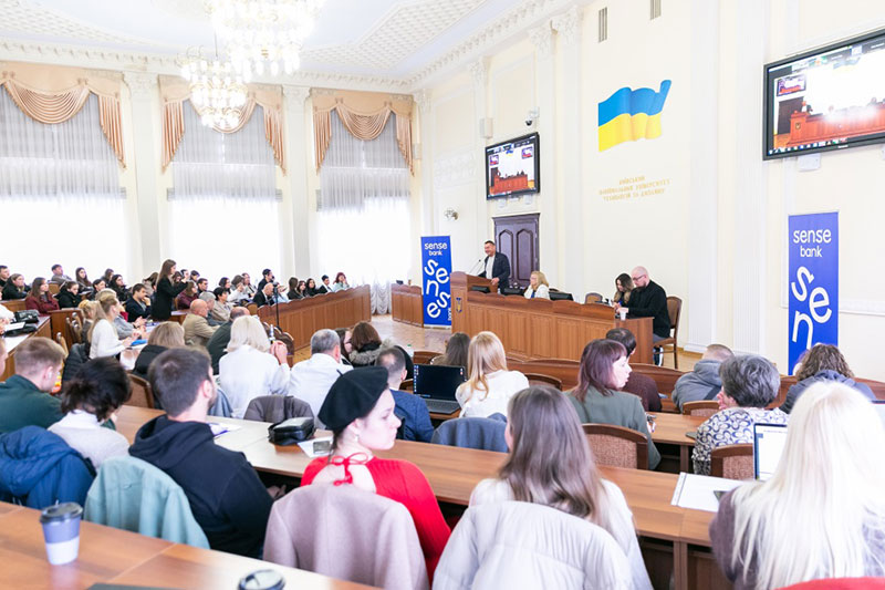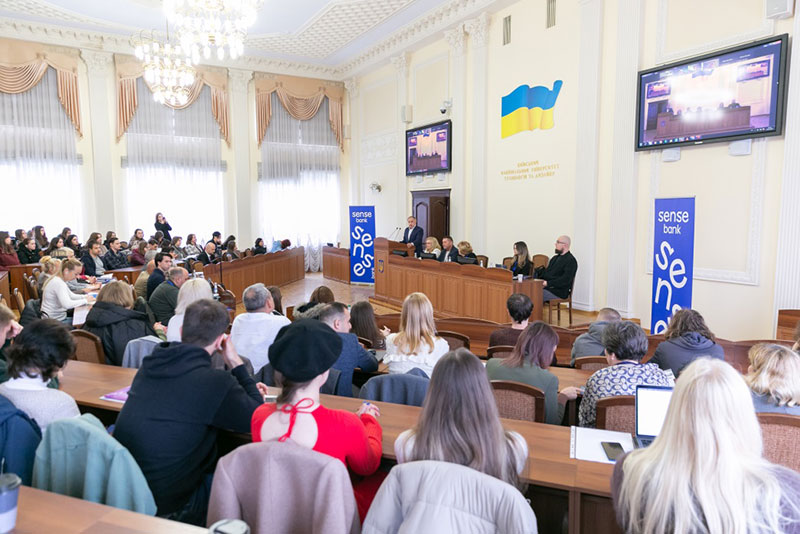 Учасників і гостей заходу з початком роботи конференції привітав Михайло Непран, перший віцепрезидент Торгово-промислової Палати України, який підкреслив важливість партнерства між освітніми установами та бізнесом у формуванні сучасної системи підготовки фахівців. Він зазначив, що в умовах післявоєнного відновлення економіки Україні потрібні молоді професіонали, здатні мислити стратегічно, впроваджувати інновації та ефективно комунікувати на міжнародному рівні. Особливу увагу звернув на роль знання іноземних мов як ключової компетенції, що відкриває студентам можливості для участі у міжнародних проєктах, стажуваннях та залучення України до глобальних економічних процесів.