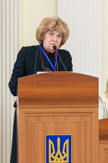 Від колективу ДННУ «Академія фінансового управління» учасників заходу привітала Тетяна Єфименко, президент Академії, академік НАН України, доктор економічних наук, професор, заслужений економіст України. Тетяна Іванівна закцентувала на провідній ролі науки в забезпеченні фінансової стійкості держави в умовах війни, необхідності формування ефективної системи управління відновленням економіки та підвищення довіри до державних інститутів. Вона підкреслила важливість партнерства науки, бізнесу та органів влади у розробленні інноваційних механізмів фінансування післявоєнної відбудови, а також ролі освітніх установ у підготовці фахівців нового покоління, здатних працювати в умовах кризових викликів.