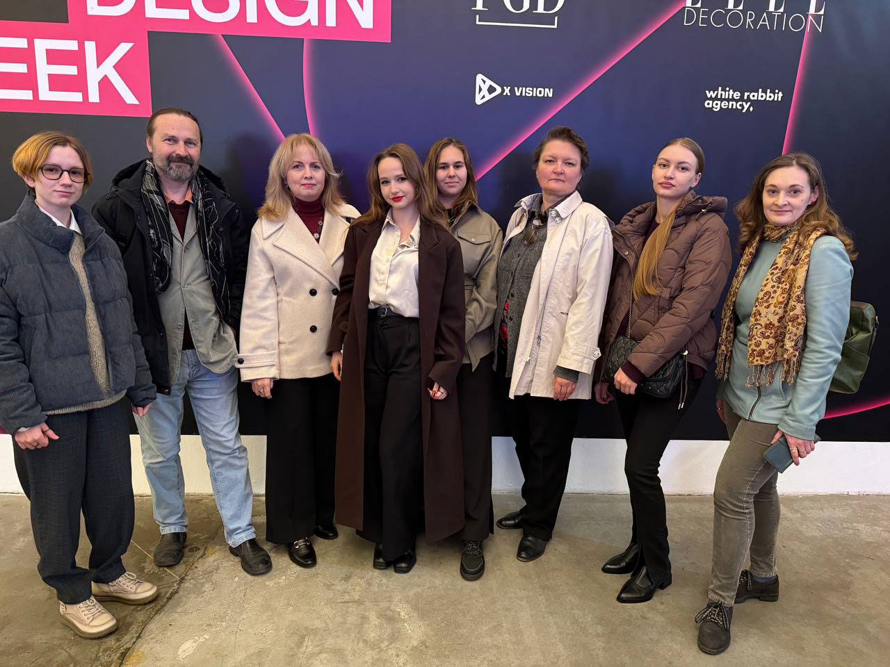 Калина Пашкевич, декан факультету дизайну, а також завідувачі кафедр факультету Данило Косенко, Наталія Чупріна, Лілія Журавель-Змєєва, Олена Васильєва разом зі студентами-дизайнерами КНУТД ознайомились з експонатами виставки, сучасними тенденціями в дизайні, інноваційними технологіями.
